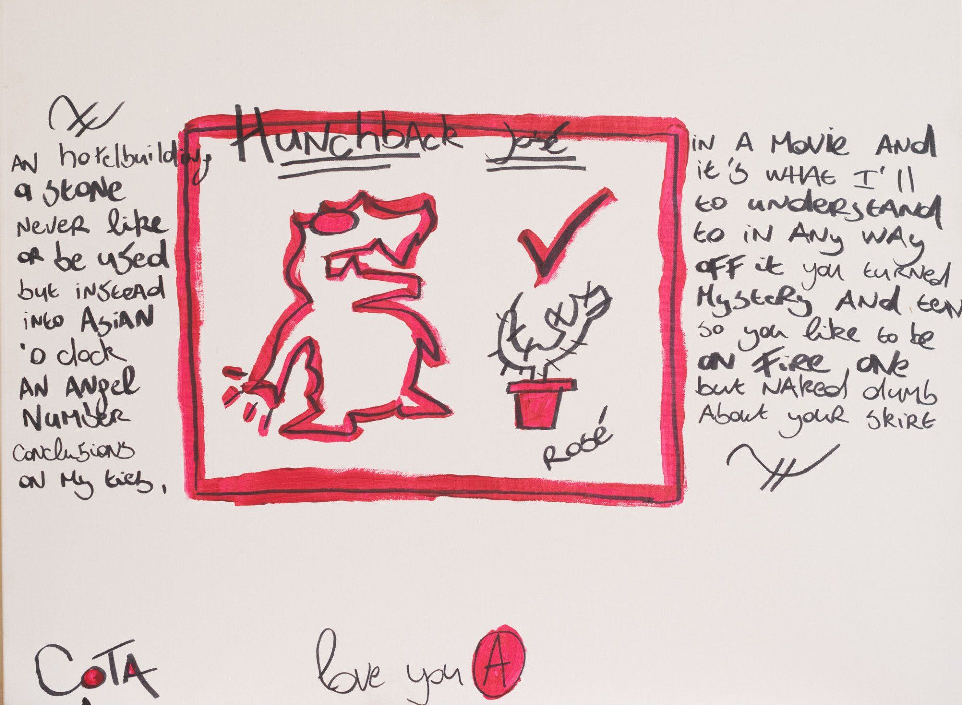 Geert Van der Eycken schildert en tekent onder zijn artiestennaam Cota de la Rocca. Schetsen maakt hij in zijn dagboek. Van daaruit ontaat inspiratie voor schilderijen. Vaak legt hij het werk weken opzij om er dan later aanpassingen aan toe te voegen.
